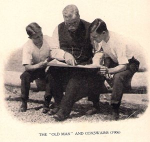 More than a year ago, when I was searching for some special books, I happened to click on the wrong button on AbeBooks. Instead of getting the newly posted rowing books, I got the most expensive ones. To my astonishment I found that a bookseller in Portland, Oregon – this beautiful town of books – was offering C.V.P. Young’s The Cornell Navy: 1871-1906 – A Review for US$50,000 (yes – a 5 followed by four zeros: US$50,000!). Young’s book, from 1907, in red cloth with two crossed oars as decorations on the cover, has 71 pages and many nice photographs as illustrations. Young, professor of “Physical Culture at Cornell University and Director of the Gymnasium,” had dedicated the book to Cornell’s head coach at the time, Charles Courtney, to all rowing Cornellians known as, the “Old Man”. Courtney was a very successful amateur sculler and rower, and, later, is also to be regarded as one of America’s most prominent professional scullers, who, after his career as a professional rower, became a famous coach for Cornell Navy.
