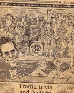 Hugh Laurie also competed at the Junior World Championships in 1977, and at the Henley Royal Regatta in the coxless pairs in 1980. About the last race, and his “fascination with Henley”, he wrote a very funny article in, I think, The Sunday Telegraph on 2 July 1990: