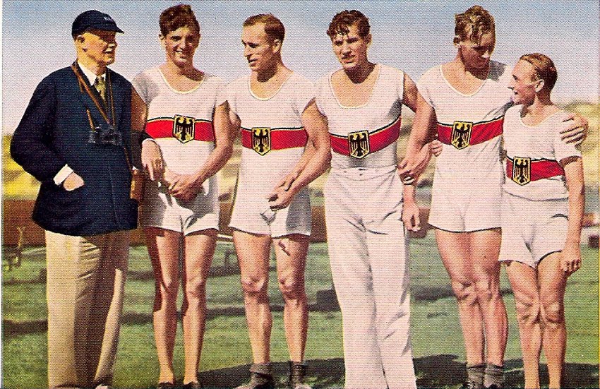 Later, Tom Sullivan turned to coaching, and being very successful, he moved to Berlin where he trained crews at the Berliner Ruder-Klub. Sullivan was interned during the Great War, where he organized the physical training for the Allied prisoners in the concentration camp where he was held. After the war, the ‘Old Devil’, as he called himself, spent some time at De Amstel in the Netherlands before returning to the Berliner RK in 1925. The ‘Old Devil’ – he ruled his oarsmen with severity – coached the German coxed four to an Olympic gold in Los Angeles in 1932, the same year his adepts Herbert Buhtz and Gerhard Boetzelen took an Olympic silver medal in the double sculls. Buhtz also won the Diamonds that year, and also in 1934.