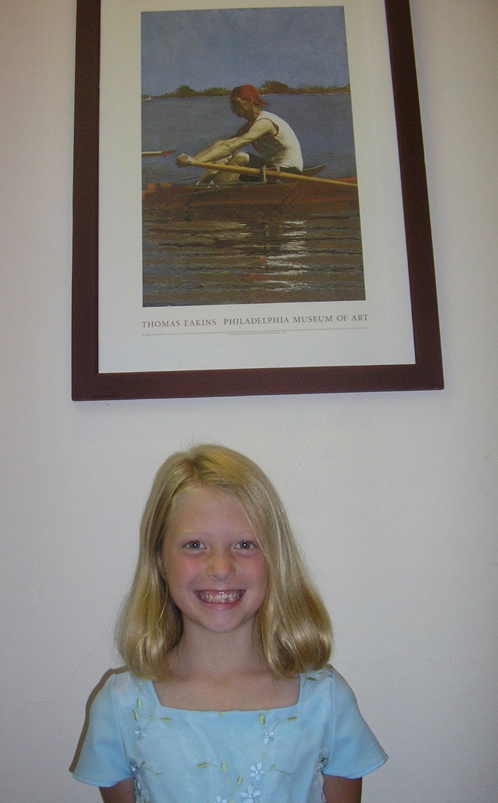 Today’s entry is another very personal one: our daughter, Ingrid, is turning 8 years old. Earlier today, my dear wife snapped a photo of Ingrid, standing below a poster of the professional oarsman John Biglin. This is, indeed, very appropriate, as this image, painted by Thomas Eakins in 1873, probably is the first ‘image’ that Ingrid recognized as a young child.
