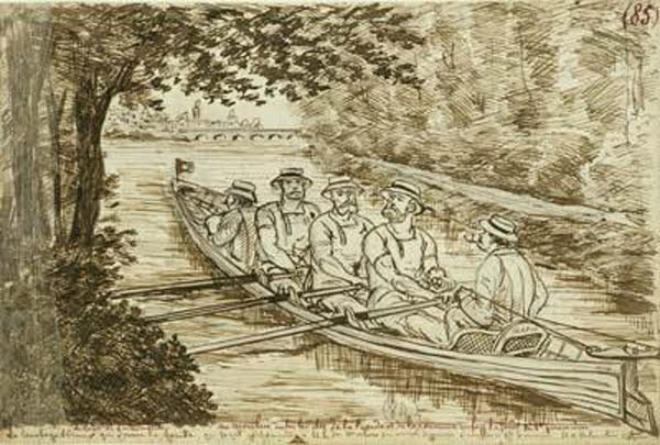 The other day I received a nice e-mail from one of the readers of my blog, Hélène from France. She attached a drawing of some ‘Parisian Boating Men’. The image, she writes, can be found in the book Canotage, Glouglou, Stella et Mignonne by Alain Chartier. Hélène continues, ‘it is a humorous album featuring boating scenes on the Seine between 1861 and 1878’. Hélène also points me in the direction of the National Maritime Museum, Musée National de la Marine, which is running a blog on maritime matters.