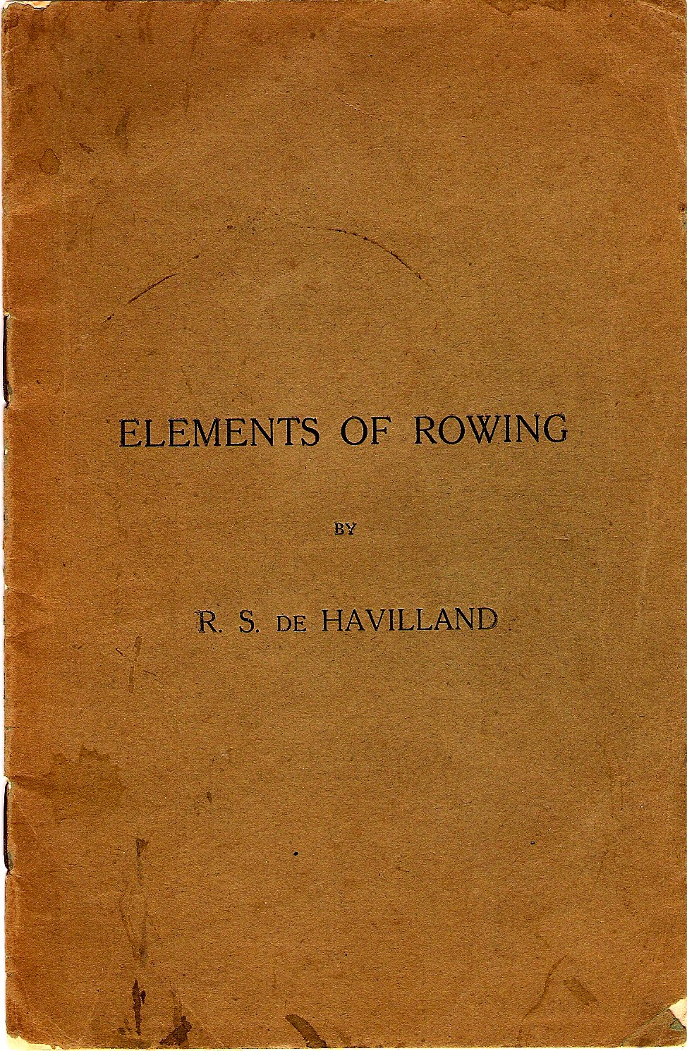 Nowadays, eighty years after it was published, Oar, Scull and Rudder is hard to come by in the antiquarian book trade. So are almost all of the publications that Brittain mentions in his book. One example is Reginald S. de Havilland’s Elements of Rowing, a little pamphlet published in 1913 by Eton College where de Havilland, or “Harvvy” as he was known, was the rowing coach. The pamphlet is only 11 pages [Brittain states 77 pp, but that must be a misprint] and it has “suggestions […] to helping those boys who are engaged in coaching junior fours at Eton” as stated in the foreword. It has short chapters on: “body”, “feet”, “hands”, “swing”, “forward like a spring bent down”, “finish”, “straps”, “the oar”, and “summary”.