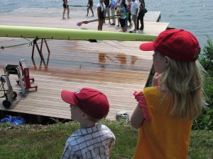 For the 2008 races, I was actually invited for the Boat Race Luncheon at The Lighthouse Inn in New London. Both Harry Parker, coach for Harvard, and John Pescatore, Yale’s heavy men’s coach, gave some short speeches about how they thought the races were going to end up. It was also at this nice occasion the draws were made for which crews were going to row on the New London or Groton side of the river. Having a special invitation, my family and I watched the races from Red Top. I would like to mention that my dear wife was a very good sport about it, as her family is full of old Yalies.