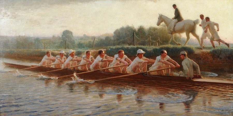 It is through Tim that an image of ‘In The Golden Days’ has reached me so I could post it here. The painting belongs to Thames RC and in an e-mail Mr. James Elder, the Honorary Secretary of Thames RC, explains that “that prints of the painting in various sizes should shortly be available via Bridgeman On Demand. Prints of ‘The Start at Henley’ are already available from the same site [click