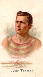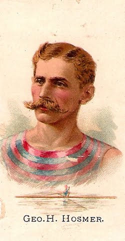 So, who were these professional oarsmen who had signed an agreement to boycott Charles Courtney “in order to protect” themselves and not row with or against him in any regatta, which I wrote about in yesterday’s entry? On the web you can find information about Wallace Ross and James A Ten Eyck on Wikipedia. (Ten Eyck’s son, Edward Hanlan Ten Eyck, would become the first American to win the Diamonds at Henley in 1897; the Henley Stewards’ did not invite him back the following year, due to the fact that his father had been a professional sculler.) Rowing historian Bill Miller has written an introduction to Fred Plaisted (seen down on the left) as the National Rowing Foundation has Plaisted’s scrapbook at