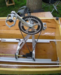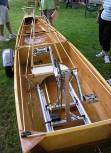 Another exhibitor’s watercraft also caught my eye, Andrew Meigs’s Dancing Dragon, which was launched earlier this month! Andrew, who is an old oarsman, became tired always facing backwards, he said, so he came up with this propeller-driven, scull-less, faceforward ‘cycle-boat’. Being conservative when it comes to my sculling and rowing, I truly thought this was a fun-looking boat, which I would not mind at all to go for an outing in!