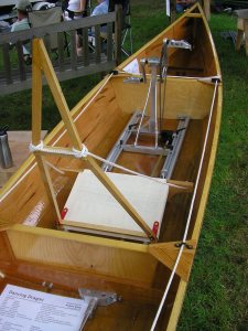 I met Steve Ferlauto, whom I talked to at last year’s show. Steve is running the River School Boats and this year he had his latest built boat on display, a mix of old and new – old as it is built out of wood, and new that it has ‘wingriggers’ (see above). He is eager to know how this recreational shell is going to be received. Will the wooden ‘traditionalists‘ whine about the wingriggers, and will the carbon fiber scullers complain about the wood?