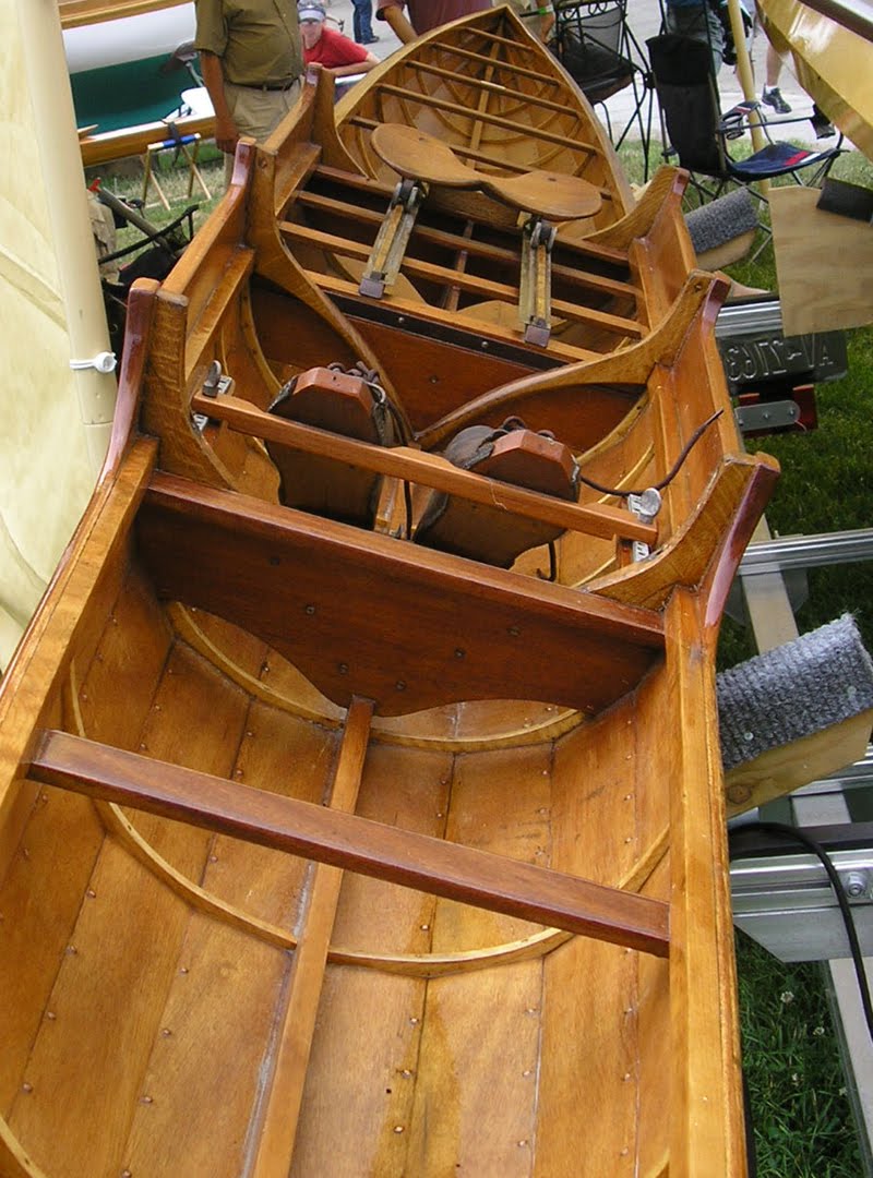 I met Steve Ferlauto, whom I talked to at last year’s show. Steve is running the River School Boats and this year he had his latest built boat on display, a mix of old and new – old as it is built out of wood, and new that it has ‘wingriggers’ (see above). He is eager to know how this recreational shell is going to be received. Will the wooden ‘traditionalists‘ whine about the wingriggers, and will the carbon fiber scullers complain about the wood?