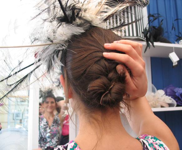 Eva tried on a fascinator, a special hat.