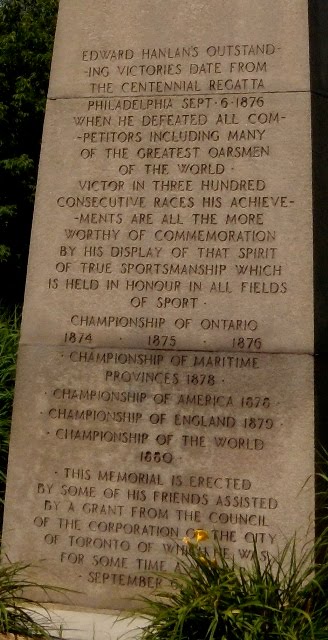 “I couldn’t resist a ferry ride to Hanlan’s Point,” he writes. About Toronto’s great son and the statue erected to honour him, Bill points me in the directions of a web site, which states: “Raised on the Toronto Islands, Ned Hanlan [1855-1908] became a World Champion sculler in 1880. He is one of Canada’s most loved sports heroes of all time. To honour his achievements, the City of Toronto erected a monument to Ned Hanlan carved by famed sculptor Emanuel Hahn in 1926. Formerly on the grounds of the Canadian National Exhibition, this monument has been relocated to the site that bears his family name.” Hanlan’s Point is where Ned’s father had a hotel. Read more here.