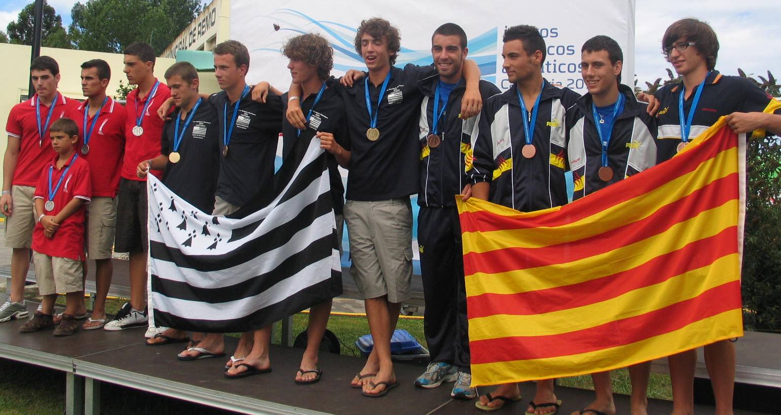 This was the 16th edition of the Atlantic Water Games since it started in Brittany in 1995. Twelve European regions participate every year, among them Scotland, Wales, Cornwall, Ireland, Norte Portugal, Galicia, etc. About 400 young athletes are competing in sailing, scuba diving, surfing, kayaking and, of course, rowing! All went smoothly with nice weather conditions. I am happy to report that the region I come from in France, Brittany, ended up at the top of the podium, winning the over-all points! On second place came Cantabria, and on third, Catalonia.