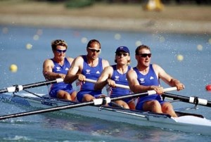 Before this month has ended, I would like to bring the HTBS readers attention to a ten year jubilee. Ten years are maybe not much for an old sport like rowing, but a decade ago something amazing happened at the Olympic rowing event on Penrith Lakes outside of Sydney. On Saturday, 23 September 2000, the British oarsmen Matthew Pinsent (stroke), Tim Foster (3), Steve Redgrave (2), and James Cracknell (bow) took the gold medal in the coxless four. This was Redgrave’s fifth consecutive Olympic gold medal which is a unique thing both in rowing and Olympic history.