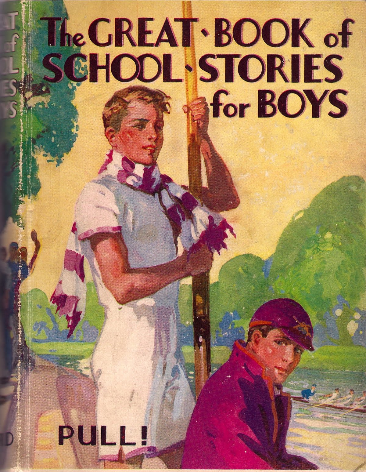 Some weeks ago I ordered a book from a bookseller in Scotland, The Great Book of School Stories for Boys (1933). According to the web site where I found the book, it contained stories by Hylton Cleaver, Captain G.A. Hope, N. Humphrey, Davy John Sweet, etc. The web site also had a picture of the book cover, an image of some rowers and with ‘Pull!’ written on the left-hand corner.