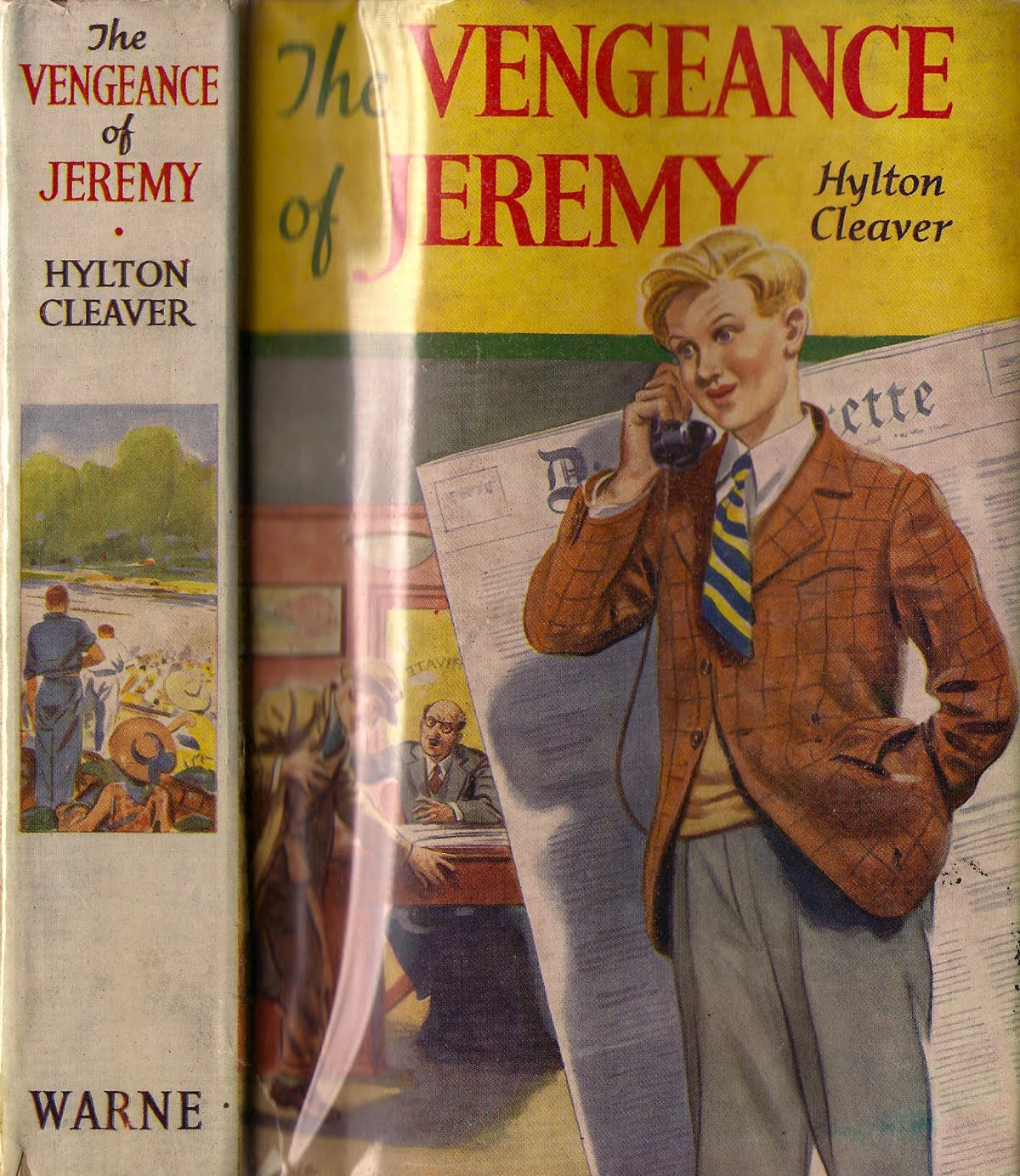 On 10 November I asked if anyone knew about a fiction story on rowing by Hylton Cleaver, who was a sport journalist and author of books for young boys. I know of several novels by Cleaver in which he tells the stories of boys boxing and playing cricket and Rugby football, but rowing, sadly not. On 13 November Tim Koch published a nice piece about Cleaver, which had a link to many of the titles of his novels, but nothing stood out as being about rowing. Then slightly more than a week ago, Tim sent me a link to a book by Cleaver on eBay, The Vengeance of Jeremy (1953). The cover was ripped, but on the spine one could see a ‘rowing scene’. I looked around on the web and found a copy with a nice dust-jacket, and ordered it right away.