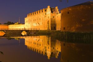 Regarding the e-mail from Chris Partidge of Rowing for Pleasure, which was posted on HTBS yesterday, it ends “Your reference to Lund reminds me of the time I visited it for the launch of the Bluetooth radio short-range radio system for mobile phones and computers. At the launch, we were told all about Harald Bluetooth, who unified Scandinavia (hence the appropriate use of his name for a common standard for radio communication). According to the PR spiel, he got his nickname from his love of cranberries, which stained his teeth. Later, we were taken to a historical recreation at Malmö Castle [seen above]. I got talking to a real historian, who said “Cranberries? It’s all ballocks. Bluetooth is a corruption of an old Norse name meaning ‘Grey Warrior’ or something similar.”
