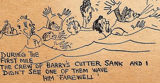 During the first mile the crew of Barry’s cutter sank and I didn’t see one of them wave him farewell.