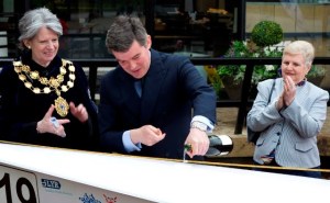The Lord Mayors Locum Tenens with Hugh Robertson, MP, and British Rowing Chairman Di Ellis in Hyde Park.