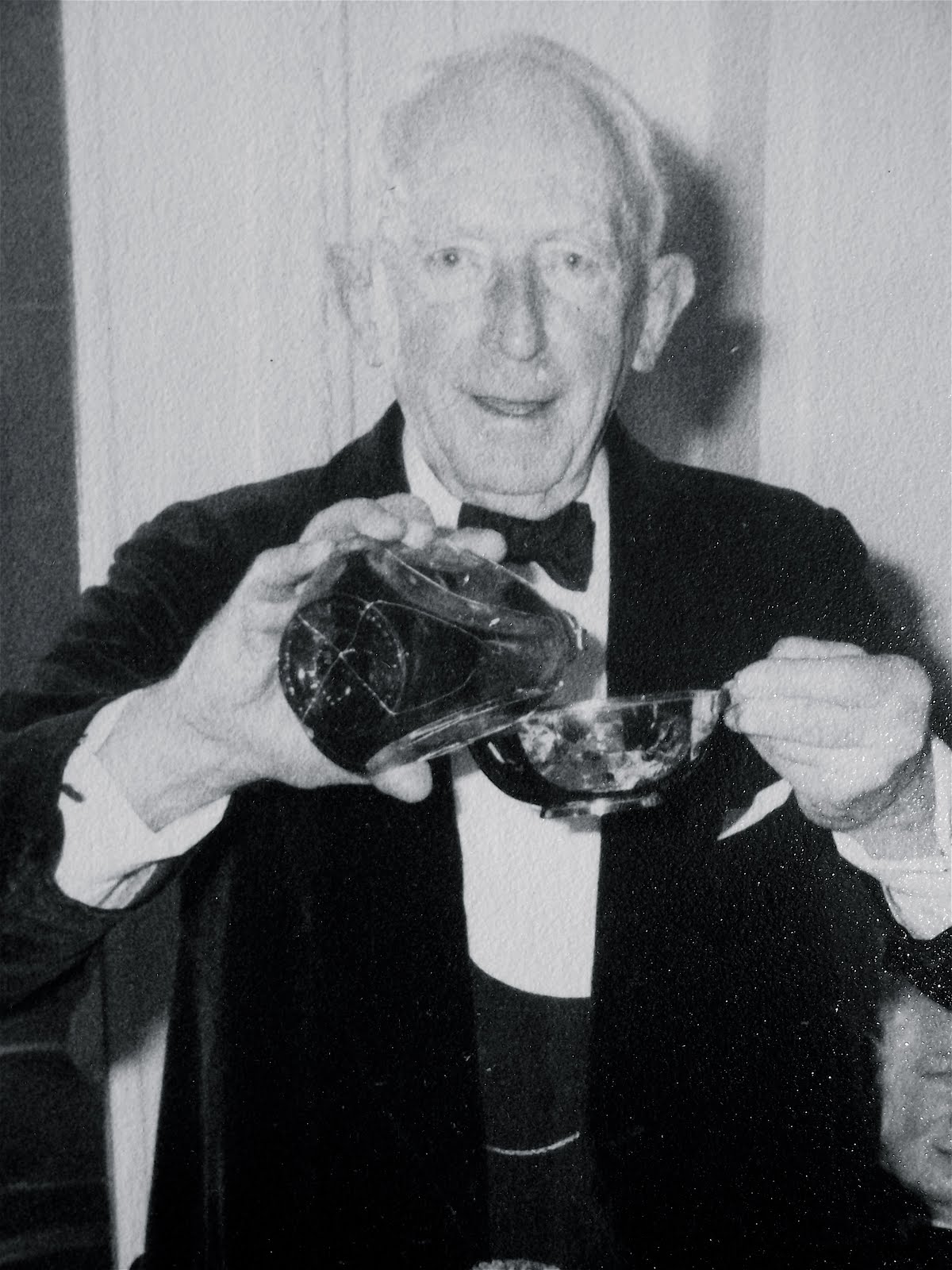 Looking at the picture above, taken when Wally was in his eighties, a twinkle in his eye and a bottle of whisky in his hand, I don’t think that I would use the epithet ‘crusty old Scot’. He looks like fun to me.