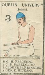 This would appear to be the first visit by an American crew to Ireland. However, an Irish crew had raced at the International Regatta in Philadelphia in 1876. Rowing at Trinity College, Dublin can trace its roots back to 1836, initially through the ‘Pembroke Club’ and then as ‘Dublin University Rowing Club’ (DURC). Between 1881 and 1898 there were two clubs representing the university, thanks to the formation of the rival ‘Dublin University Boat Club’. The two clubs finally amalgamated in 1898.