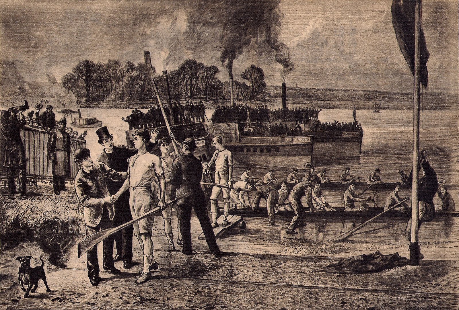 On top is a sketch from 1882 when Gilbert C Bourne rowed bow in the winning Oxford crew in the Boat Race. The following year, still at bow, Bourne took his second victory in the Race.