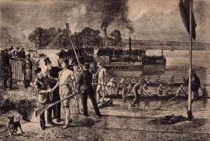 However, by coincident I just received an old article from 30 March 1946 (published in the Picture Post) about the the Bournes, “The Greatest Rowing Family”: Dr. Gilbert C. Bourne, his son Robert ‘Bob’ C. Bourne, who stroked four winning Oxford crews in the Boat Race 1909-1912, and his son, Robert ‘Bobbie’ M.A. Bourne, who was awarded his Blue in 1939, but had to give it up ten days before the Race due to hurting his hand. When World War II broke out he joined the 4th Oxfordshire and Buckinghamshire Light Infantary but was captured before Dunkirk. He spent five years as a P.O.W. After the war, he went up to Oxford again and earned his second Blue. At first his stroked but was moved to No. 4. The 1946 Boat Race was won by Oxford. (In the 1947 Boat Race, Bobbie Bourne was also rowing at No. 4, but that year the Race was won by Cambridge.)