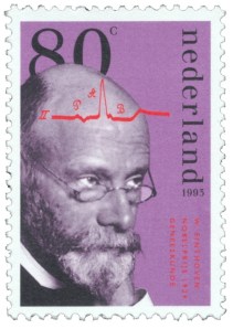 Johan kindly pointed out that his rowing club, USR ‘Triton’, in Utrecht, Netherlands, has had not only one member getting a Nobel Prize, but three (3!). Johan goes on to say that one of the founding fathers of ‘Triton’, which was established in 1880, Willem Einthoven, received the Nobel Prize in Medicine in 1924 for inventing the ECG (or EKG). Einthoven is seen in the 1883 photograph above in the 2nd seat in the coxed four. In the 1990s, he was also depicted on a stamp in the Netherlands.