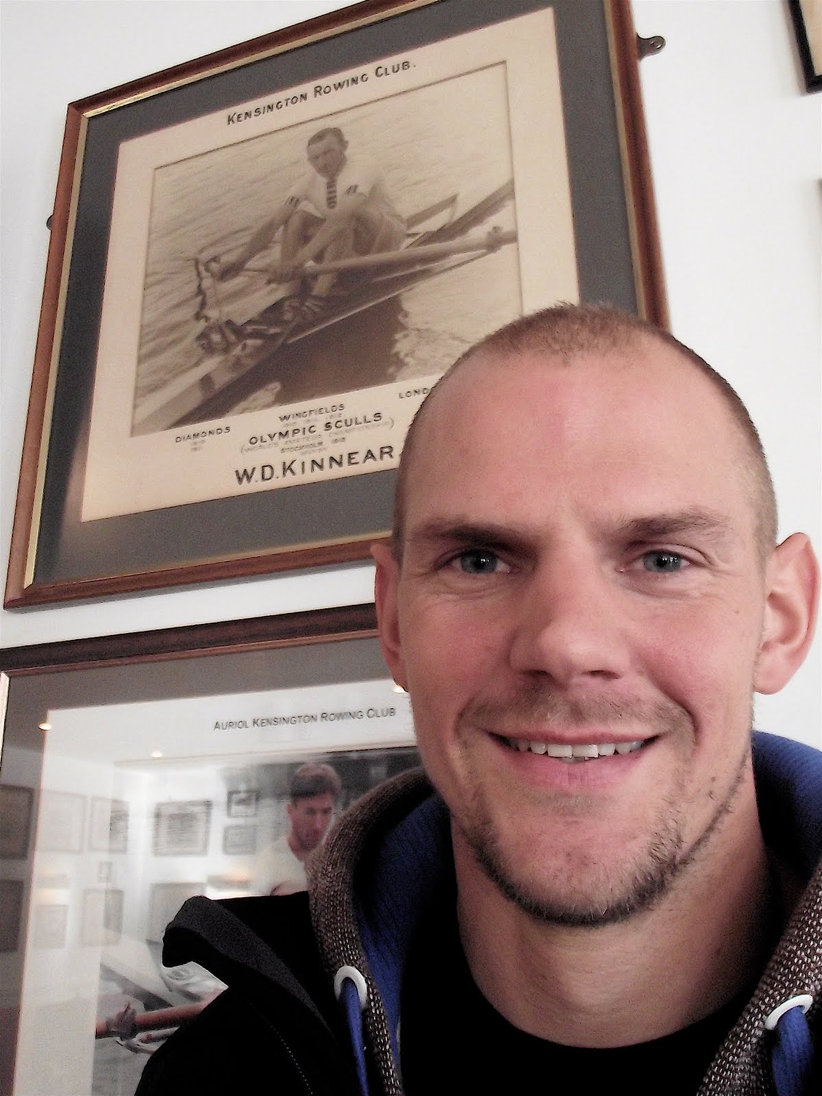 I, of course, had to take advantage of having a great Olympian in the Auriol Kensington clubhouse. Firstly, I photographed the possible 2012 Olympic sculling champion under a picture of the 1912 winner (Kensington Rowing Club’s Wally Kinnear). Secondly, I asked Olaf for an interview – which he kindly gave.