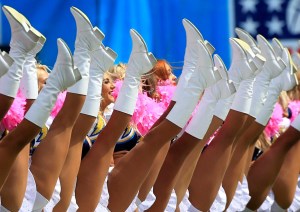 *For all non-American readers of HTBS, and for those of us who know nothing about ‘American football’, Philip leaves the following comment: “I couldn’t resist some fun. Manning, Brees, Rivers, and Ponder are all professional football quarterbacks. May my poem help keep their game afloat.” The image is added by HTBS editor: some cheerleaders showing good leg-work at a football game.