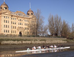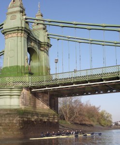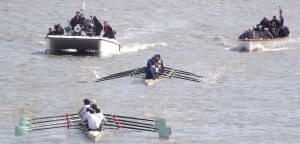 There are, it may surprise you to know, seven ‘Oxford – Cambridge Boat Races’. On 25 March at Henley, the Heavyweight Women’s Race and Lightweight Men’s Race were won by Cambridge while Oxford’s Lightweight Women and Heavyweight Reserve Women were victorious in their events. The ‘main event’ on 7 April will see the heavyweight men and the reserve heavyweight men race but on Friday 6 the most informal of these challenges took place – the Veterans’ (Masters’) Race. Martin Gough followed it on the Putney to Hammersmith course: