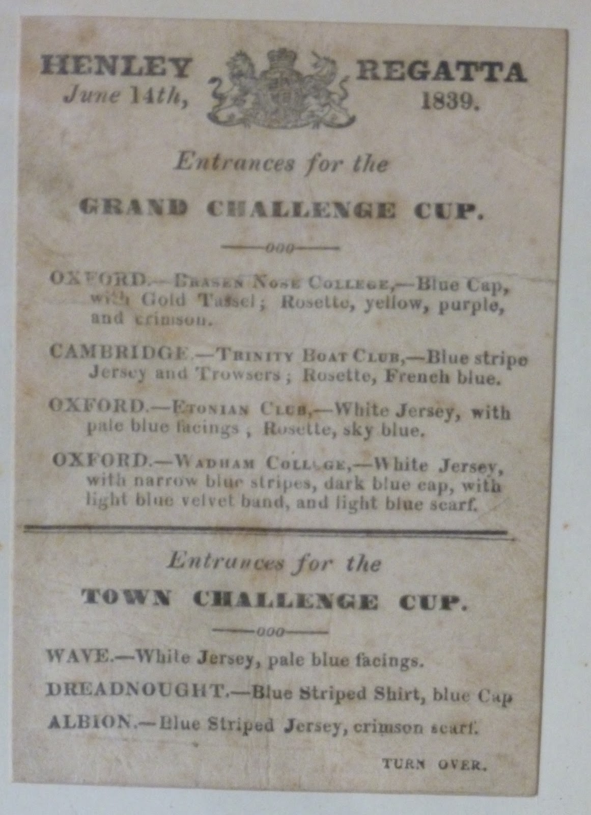 “A popular conceit regarding the character and domain of rowing in Britain is ‘toffs on the Thames’. While the two best known boat-racing fixtures, Henley Royal Regatta and the Boat Race, may be guilty of that characterization to some extent, and the Thames is undoubtedly the most rowed river in Britain, this display proffers abundant evidence of the spread and practice of the sport of rowing across the nation. Boat clubs and regattas flourished along the east, west and south coasts, and sprouted inland where rivers were found. The venues shown here are but a sample – for lack of space, a great many British rowing sites could not be represented.”