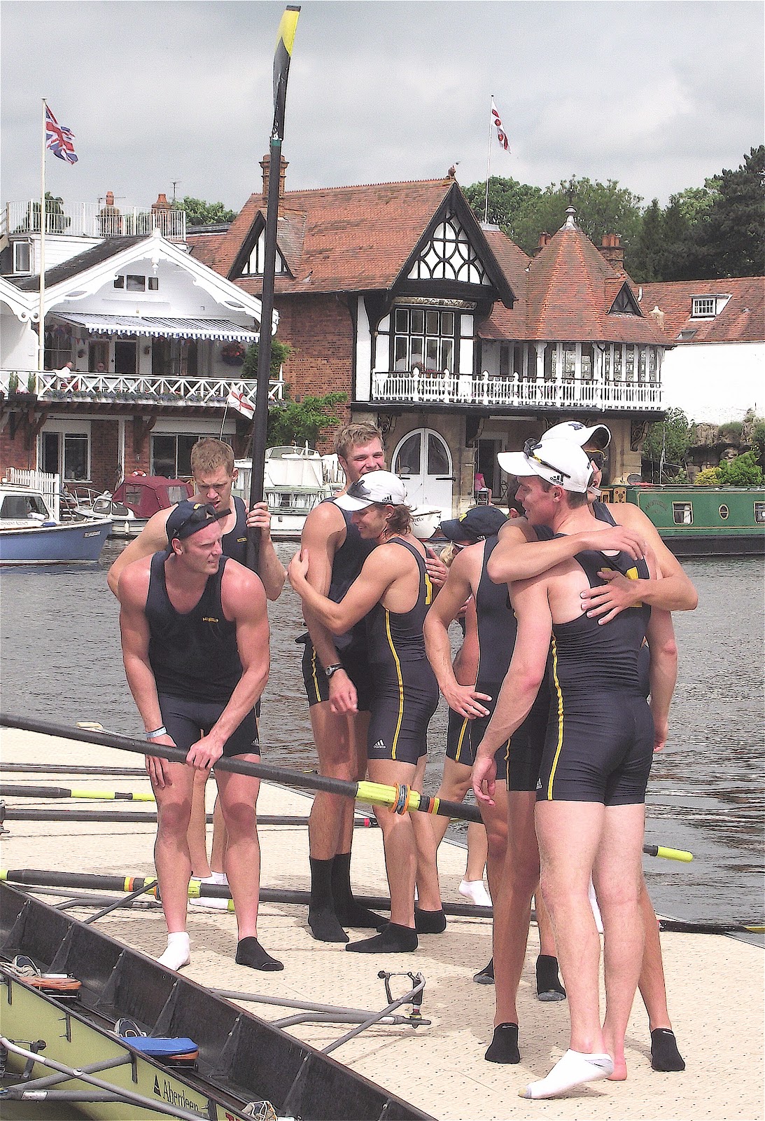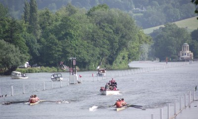 Thursday: Thames Cup – Potomac Boat Club, USA, narrowly beat Royal Hong Kong Yacht Club, China. The house opposite flying the red, white and black of Thames RC must be the best address in England.