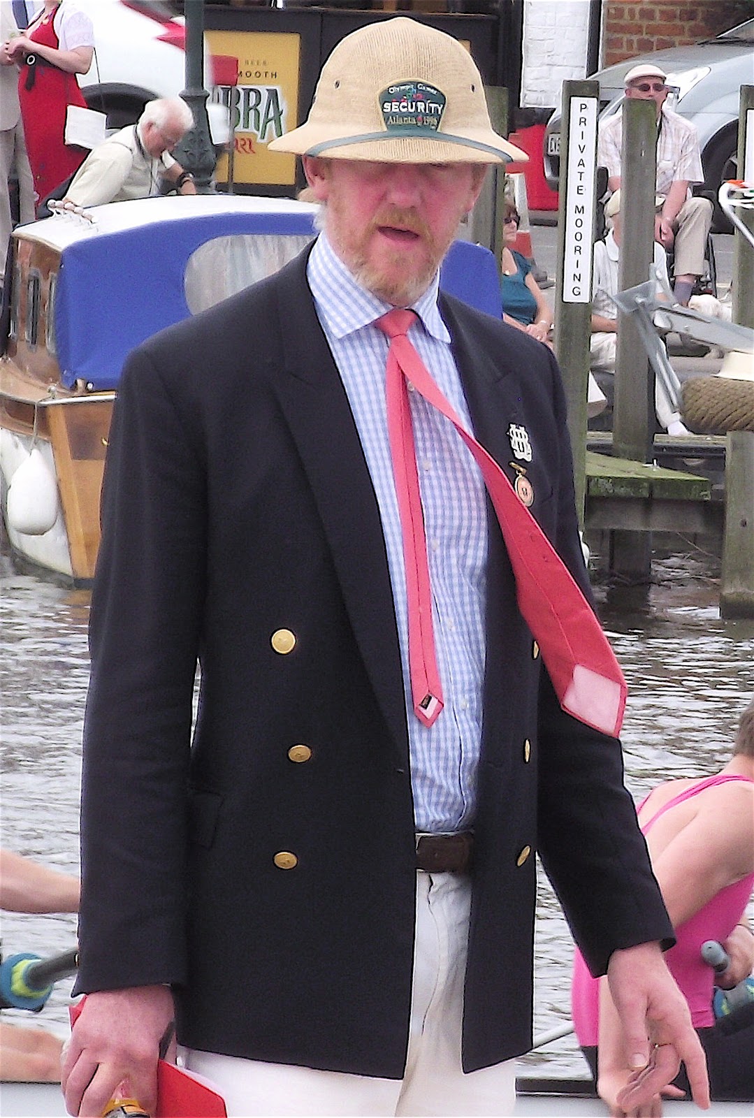 Olympic Gold Medallist and Henley Steward Ben Hunt-Davis dons appropriate headgear for Thursday’s humid conditions.