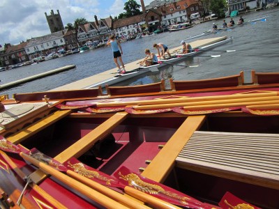 HTBS’s Hélène Rémond was lucky to be invited on board the press launch during the Gloriana’s outing on the regatta course at the Henley Royal Regatta. Hélène writes,