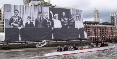 The strangest events and customs are given credibility simply by the fact that they have gone on for a long time. While this is true all over the world, Britain seems to specialise in celebrating the archaic and the eccentric. Possibly because there has been two hundred and ninety eight Doggett’s Coat and Badge Races, today’s past winners, all unpretentious, solid working men descended from generations of unpretentious, solid working men, are very happy to be seen in public wearing a costume that was first out of date two hundred years ago. Even the fact that it is bright scarlet and carries a silver arm badge the size of a dinner plate does not deter them. However, there is more to wearing the Coat and Badge than custom. Doggett’s is a celebration of the heritage of Watermen and Lightermen and their families and the scarlet costume is a physical manifestation of this. Some may not care to articulate such sentiments but they would hold the race in high esteem even if it did not involve wearing 19th-century clothing. Doggett’s winners are not usually the sort of blokes who wear knee breeches and white stockings but, as many come from families that have made their living from the Thames for as long as they can remember, they do so with pride. To quote my report on the 2011 race, the Doggett’s gives