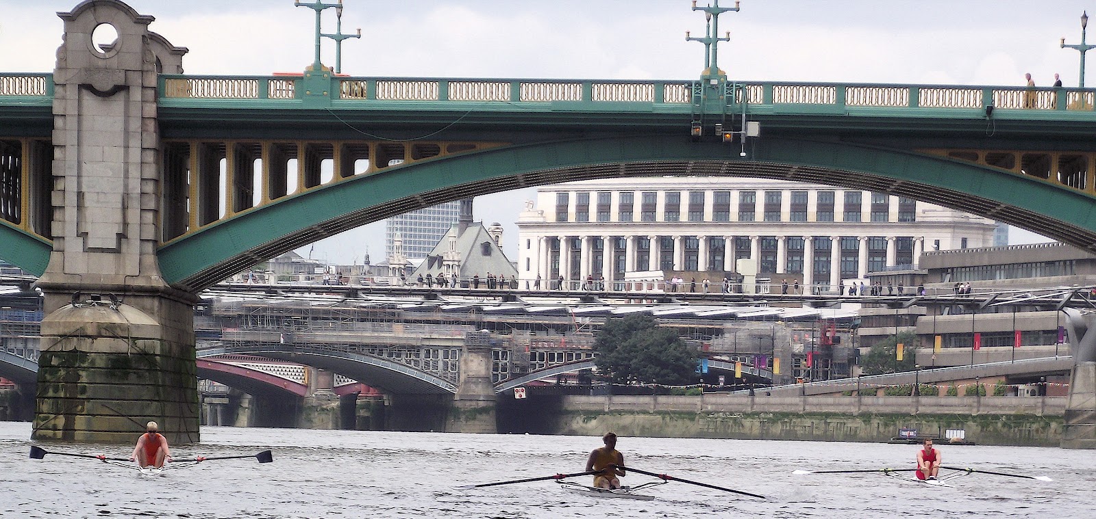 Blackfriars Bridge 1,400m from the start, Brice, Coleman and Dwan.