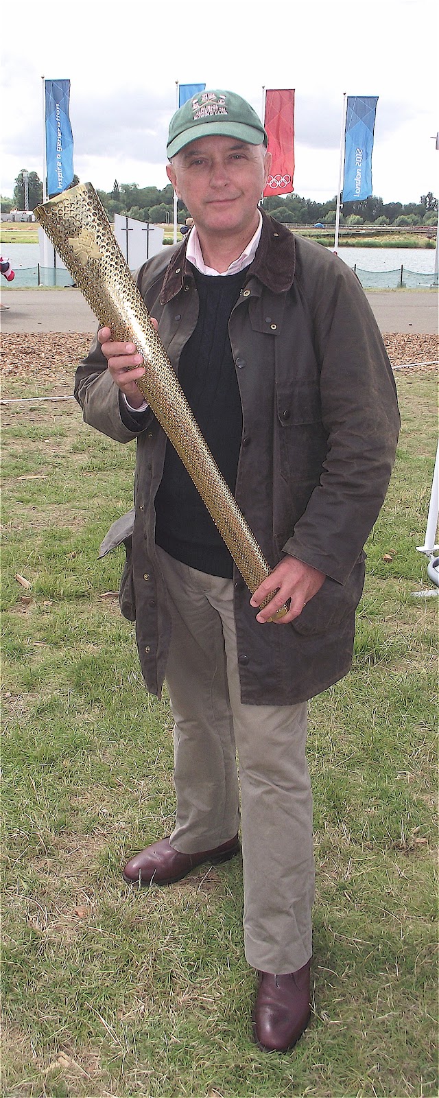 And to celebrate, what could be more appropriate than a photograph of HTBS’s own London correspondent Tim Koch at the Olympic Rowing Regatta at Eton Dorney holding the Olympic Torch. Where he got it from I don’t know…