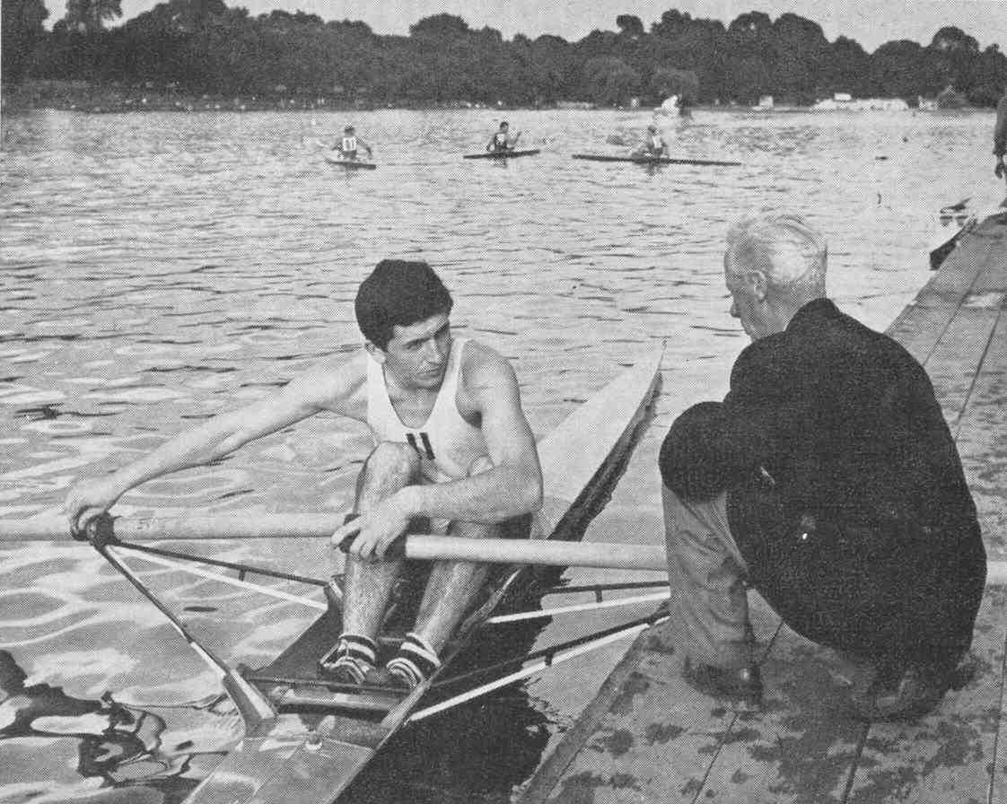 Serpentine Regatta 1962 – Bill Barry at the raft with Tom Peters, the Quintin and Polytechnic boatman.
