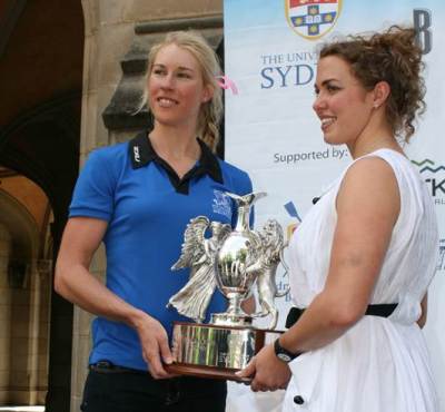 Kim Crow, Melbourne University, with Beatrix Sheldrick, Sydney University, the two 2011 Boat Captains. Photo from: http://www.australianboatrace.com