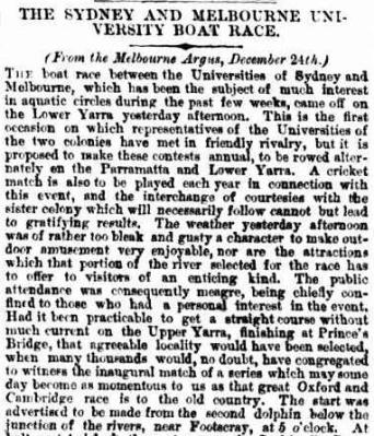 A view of the Yarra River course where the first race between Sydney and Melbourne universities took place on 23 December, 1870. Photo from: http://voice.unimelb.edu.au/volume-7/number 10/1860-rivalry-begins