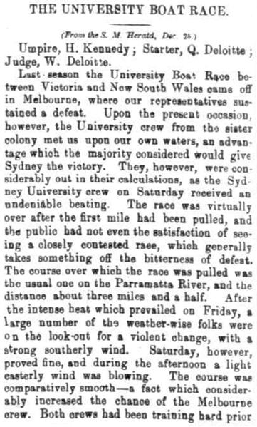 Louis Petrin, who is going to be one of the officials at the Australian Boat Race between Sydney University and Melbourne University on 4 November, writes,