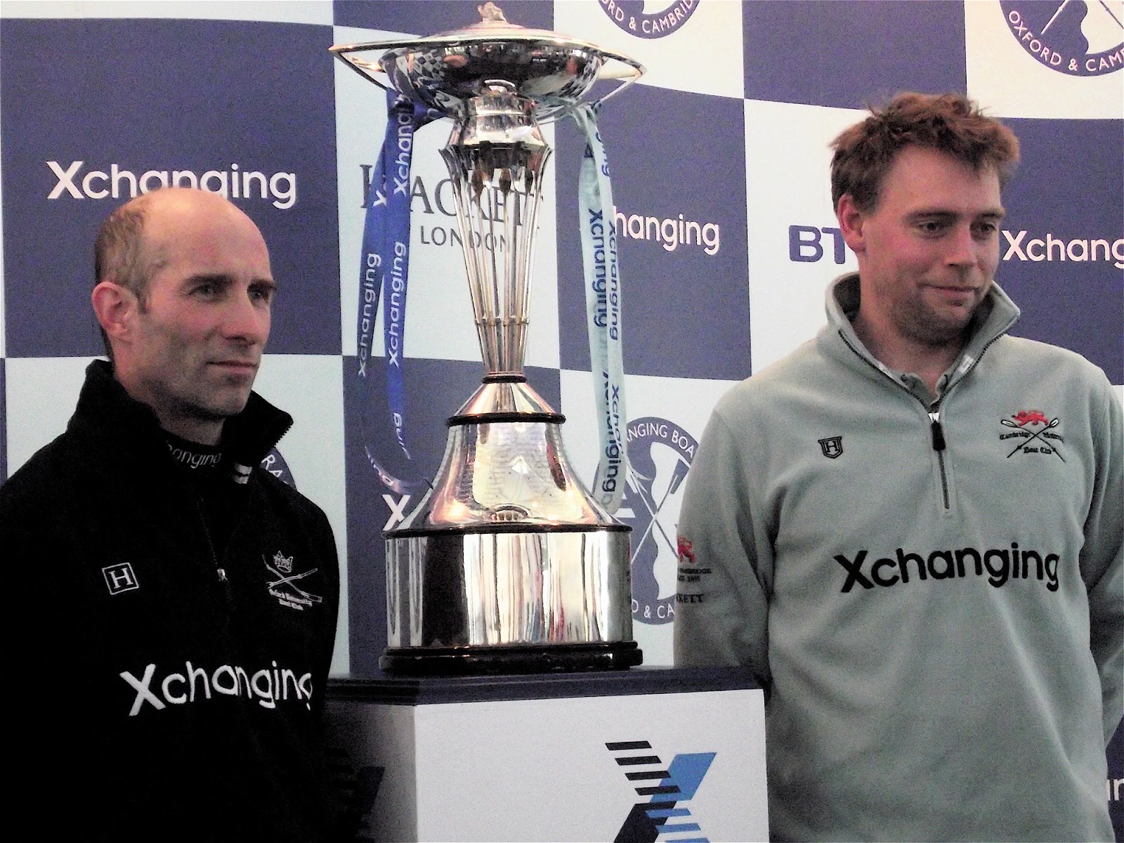 Sean Bowden, OUBC Coach, and Steve Trapmore, CUBC Coach, with the trophy in 2011.