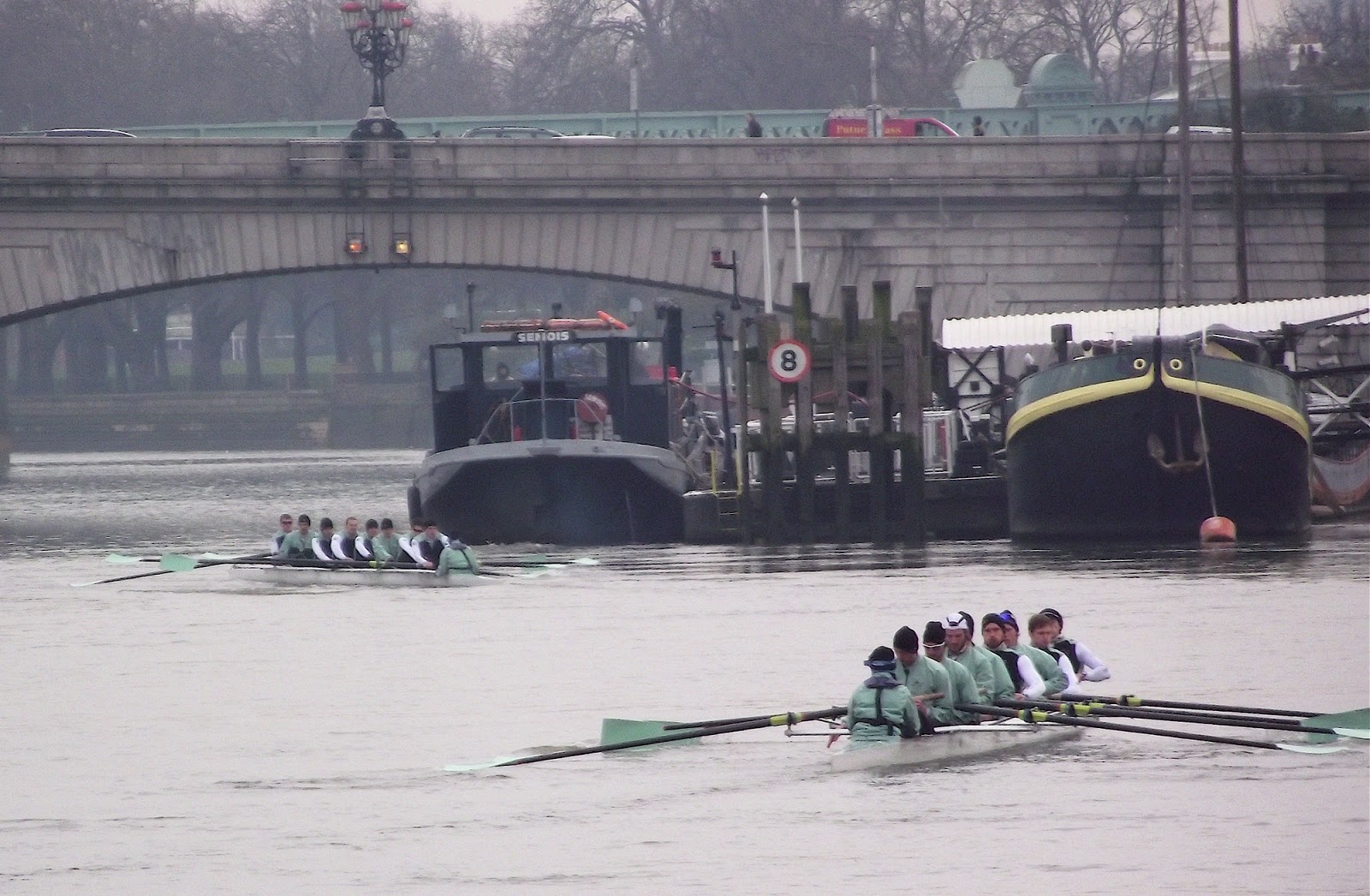 Cambridge going to the start. Mash is nearest Putney Bridge and Bangers is in the foreground.