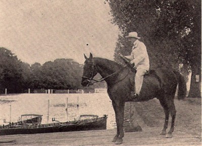 Colonel F. C. Ricardo coaching on horseback at Henley.
