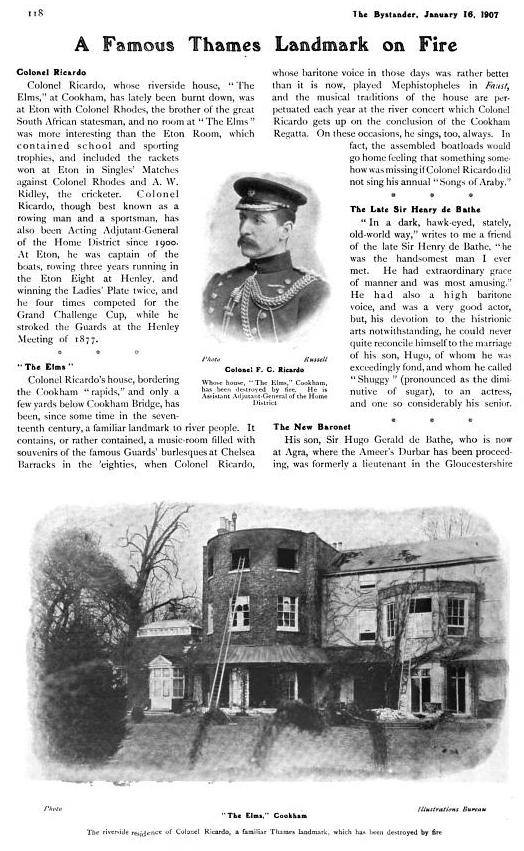 In the 16 January, 1907, The Bystandard had an article about a fire in Colonel Ricardo’s house, The Elm.