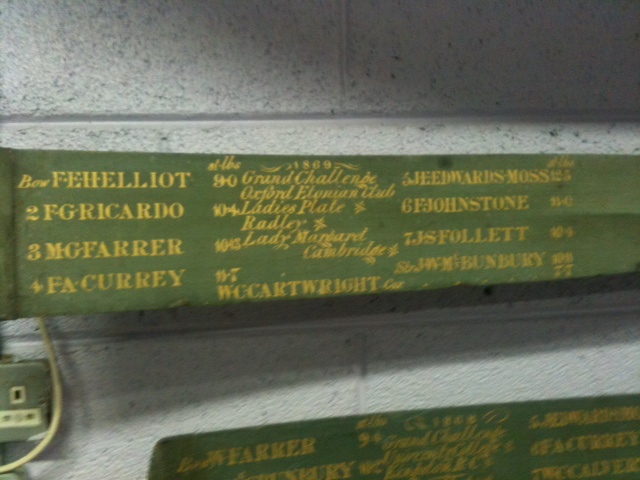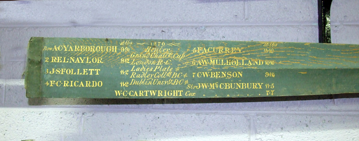 1870 Ladies’ Plate winning oar with F. C. Ricardo at ‘4’.