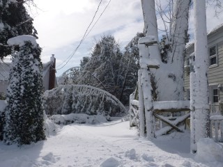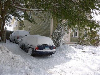 The storm, which has taken down several electricity poles in Mystic, has passed and the work starts to clear off the snow from steps, cars, pavements, etc. Here we are beginning to see our cars again.