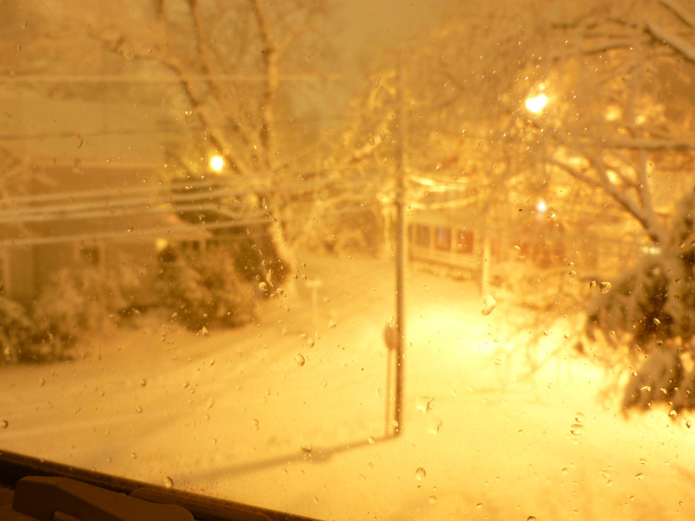Friday, late afternoon, the snow is coming down heavily, but the wind has not yet picked up…
