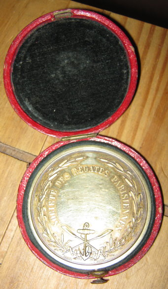HTBS received the news that John Elton in England has a rowing medal for sale. It is not just any ‘old’ medal, it is an 1867 medal won by one of the members of the distinguished and famous ‘Paris Crew’. This is the Canadian team who beat the London Rowing Club crew in the race at the Paris Exhibition Regatta in 1867. John writes, ‘It is the 1867 Paris Exhibition Regatta Medal. Gold color, French, hallmarked silver, 88 grams.’ The medal had once belonged to John’s grandfather, but he does not know how it ever came into the hands of his grandfather. The only other medal that exists from that race, that John is aware of, is in the Thomas E. Weil Collection at the River and Rowing Museum in Henley. The Paris Crew was inducted into the Canadian Sports Hall of Fame in 1956.