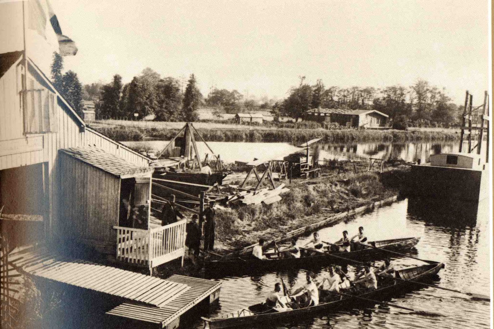This text has been adapted from an article written by Ivi Ceillier, regional technical advisor at the Direction Régionale de la Jeunesse, des Sports, et de la Cohésion Sociale de Bretagne (Directorate of Youth, Sports and Social Cohesion in Brittany). Jean-François Botrel, president of the Société de régates rennaises, kindly agreed to share the photos with HTBS. The four included old photographs above feature the Société des Régates Rennaises from 1900 to 1920. The rowing club, which opened in 1882 in the west part of the city (Saint Cyr), moved to the east part of Rennes (Plaine de Baud) in 1977. Jean-François Botrel has written a text about the history of the SRR (in French) which will be found here.