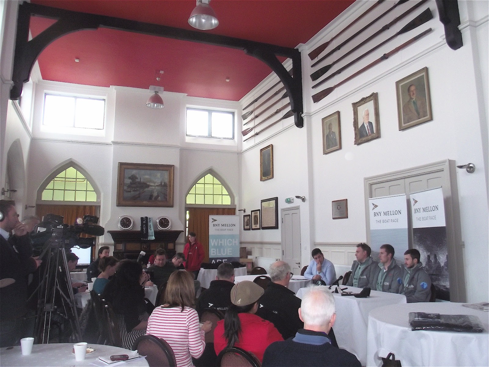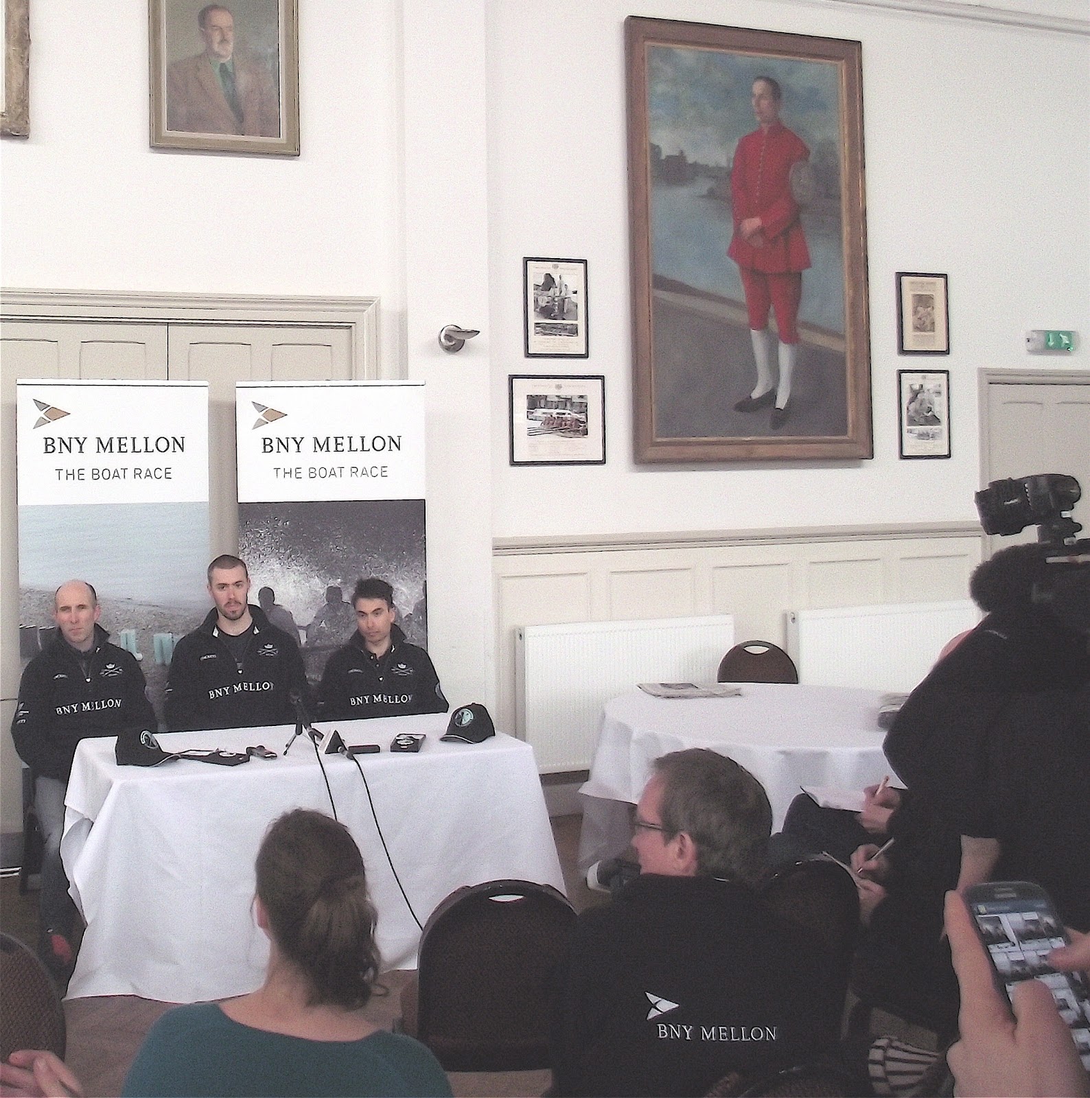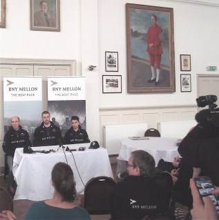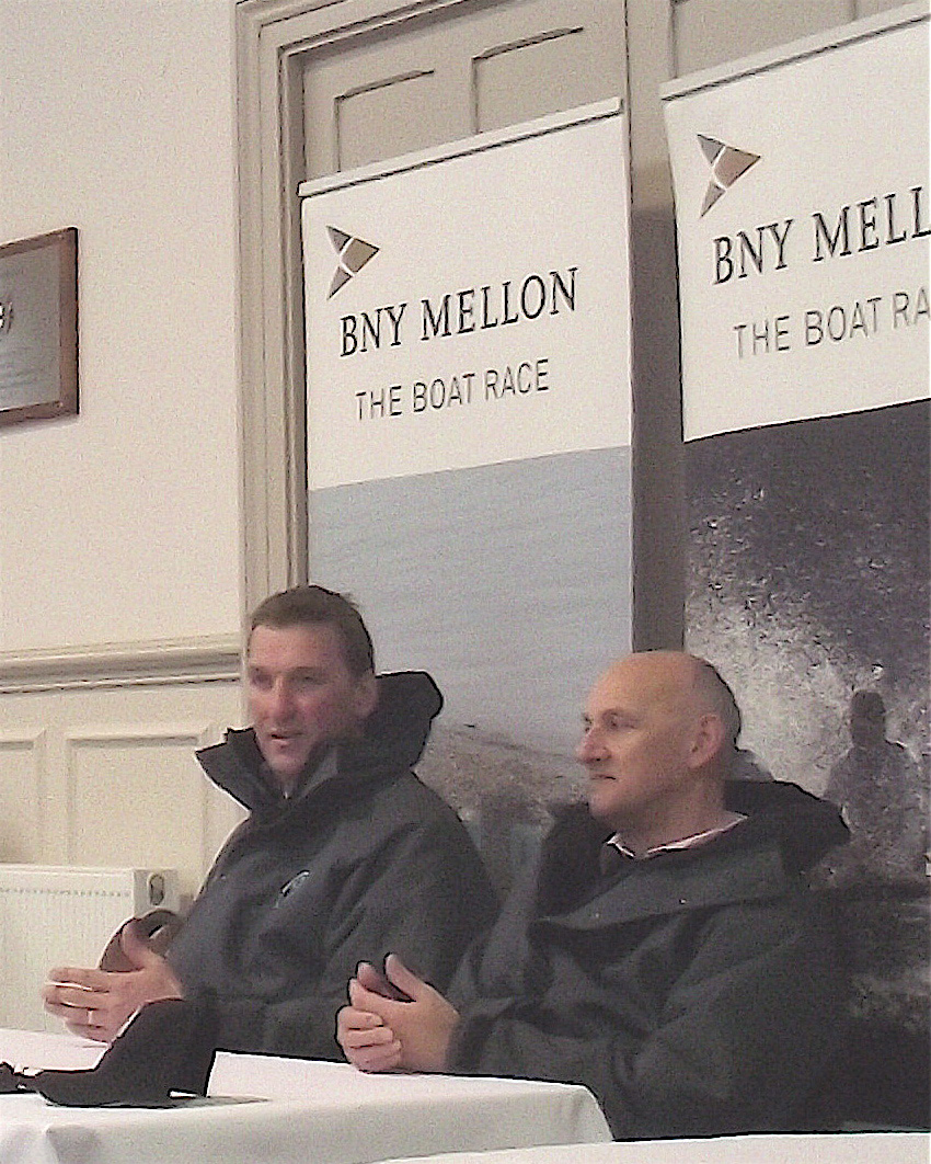 Yesterday, the final pre-Boat Race press conference was held at the ‘Media Centre’ (otherwise known as Thames Rowing Club), two days before the big event. These are inherently unsatisfactory occasions as the chosen representatives of the two boat clubs are very unlikely to say anything but that they are well prepared and confident. If they have any doubts, they are not going to share them with the wider world – though this would make for a much more interesting event. Even when were given the chance to ‘trash talk’ their opponents (like boxers at a weigh-in) they decline the opportunity (when Sean Bowden was asked what he thought of the fact that Oxford were the favourites, he replied in words to the effect that he did not gamble). Fortunately, the Umpires, Matthew Pinsent and Boris Rankov, were slightly more informative.